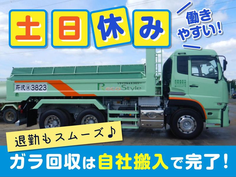 仕事内容 運搬エリア:東京都、埼玉県、神奈川県、千葉県 ①がれき引取り :建設現場→弊社工場(会社)へコンクリートガラの運搬作業 (最終の荷降ろし場は弊社工場となります。) ②再生砕石配達 :弊社工場(会社)→建設現場へリサイクル製品の運搬作業 (弊社工場から出荷になります。) ③改良土配達 :弊社工場(会社)→建設現場へリサイクル製品の運搬作業 (弊社工場から出荷になります。) <1日の流れ(例)> 7時 出勤 7時 事務所を出発 8時~12時 運搬作業 12時 休憩 13時~17時 運搬作業 17時 帰社後、報告書を提出して退勤 <入社後の流れ> 大型免許はあるけど乗ったことがない…という方も安心してください。まずは中型車で車両感覚を取り戻すところからスタート。 先輩が横に乗って、公道の走り方から現場でのルールのまで一つひとつ教えます。独り立ちを急かすことはありません。 <当社について> 昨今、環境問題について 耳にする人は多いかと思われます。 リサイクル(Recycle)と エコロジー(Ecology)を コンセプトとしている弊社としても、 この問題から目を背けるわけにはいきません。 リサイクル100%を目指す当社で ぜひ一緒に働き、社会に貢献しませんか?
