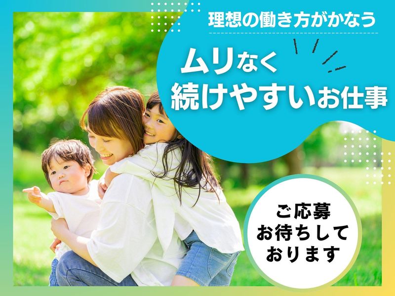 仕事内容 / 内職スタッフさん募集⭐ スキマ時間を有効活用 働く主婦さんを応援します! 家事や育児の合間にできる♪ \ . -・-・-・-・-・-・-・-・-・-・-・- オススメPOINT✨ -・-・-・-・-・-・-・-・-・-・-・- ✅未経験・ブランクのある方も大歓迎! ┗イチから丁寧にサポートします。 ✅家事・育児や本業のスキマ時間に♪ ┗自分のペースで働けるお仕事! ✅無理なく続けやすい環境◎ ┗納期やノルマは相談しながら決めるので安心 ✅コツコツ作業が得意な方にぴったり! ┗居心地の良い自宅で黙々お仕事できる♪ ✅マニュアル・見本完備! ┗初心者でもすぐに覚えられる簡単作業です . . -・-・-・-・-・-・-・-・-・-・-・- お仕事内容 -・-・-・-・-・-・-・-・-・-・-・- *カレンダーの加工・封入作業 *両面テープ貼付け *販促物の加工 などの軽作業をお願いします! 難しい作業は無いので 軽作業のお仕事が未経験の方でも大丈夫♪ 内職だから私服でラクラク勤務! 「久しぶりのお仕事で不安・・」な方も しっかりフォローしていくので ご安心くださいね** . . -・-・-・-・-・-・-・-・-・-・-・- 主婦さん活躍中! -・-・-・-・-・-・-・-・-・-・-・- 30~40代の女性スタッフが活躍中! 「子育ても家事も楽しく頑張ってます」 「だけど、もう一度私らしく働きたい!」 そんな主婦さんが 多数活躍している働き方です** . <お子様の突然の発熱>や <学校行事>など 内職ならではの対応もばっちり◎ . / まずはお気軽にご相談ください** \