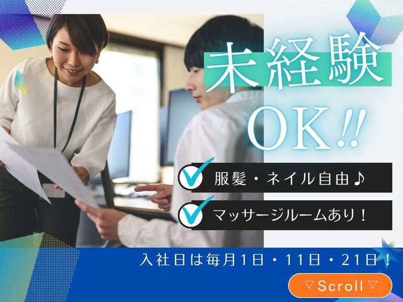 求めている人材 ⏩未経験OK ⏩経験者・有資格者歓迎 ⏩ブランクOK ⏩主婦・主夫歓迎 ⏩フリーター歓迎 ✨初のコールセンター業務も大歓迎✨ ✅PC基本操作ができる方 →スムーズなタイピング (電話でお客様と会話をしながら タイピングを行います) →四則演算が出来る方歓迎 →コピー&ペーストが出来る方 (システムへの個人情報入力は 全てコピー&ペーストを使用) ✅明るい対応ができる方 ✅積極的にわからないことが質問できる方 ✅円滑なコミュニケーションがとれる方 ✅成長意欲がある方 ✅コールセンターや事務での電話対応経験 ある方はなお歓迎です! \こんな方にピッタリ!/ ⭐髪色・髪型自由な職場で働きたい ⭐服装自由な職場で働きたい ⭐ネイルを楽しみたい ⭐平日のみ勤務、土日祝休みがいい ⭐ワークライフバランス充実させたい ⭐残業少なめで働きたい ⭐産休・育休取得できる環境で働きたい ⭐女性活躍中の環境で働きたい ⭐長く働ける環境がいい ⭐サポート体制バッチリな環境が良い -*- - -*- - -*- - -*- - -*- - -*- - -*- ≪下記、経験をお持ちの方尚歓迎!≫ ◎【一般事務】や【受付事務】 【経理事務】【営業事務】 【事務】【問い合わせ対応】 【データ入力】【書類作成】 【オンライン事務代行】 【バックオフィス業務】 などの事務職経験をお持ちの方 ◎【テレフォンオペレーター】や 【テレフォンアポインター】 【テレオペ】【コールセンター】【販売】 【接客】【営業】などの 実務経験をお持ちの方 ❒上記経験をお持ちの方は 即戦力として活躍できます! ❒アルバイト・パートが はじめての方も大歓迎! 「正社員だったけど 無理なく働きたいから応募しました」 というスタッフも活躍しています♪ 子育て中のママさんも在籍中! その他に しゅふ・声優志望のフリーターの方 上記の方たちが現在多数在籍中です!