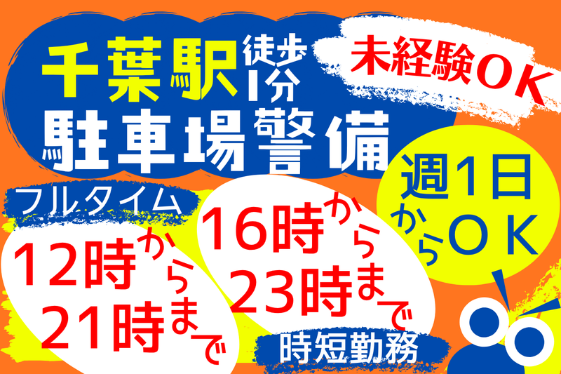 仕事内容 急募*夕勤のタワーパーキング! 千葉駅スグの商業施設でパーキングスタッフのお仕事をお願いします。 夕方16時から勤務スタート! Wワークの方にピッタリかも!? [お仕事詳細] ・駐車場に入出庫する車両の誘導 ・来館者へのご案内 ・入出庫時の機械操作フォロー ・駐車台数報告などの記録 などなど お客様が困らないよう、順番にご案内! 「こちらでお待ちください」 「お待たせしました!お進みください!」 などお声掛けをお願いします。 目立たないけど、安心・安全を提供する大事なお仕事です! *未経験大歓迎!初めてバイトも応援! 座学などの丁寧な研修でイチから学べます。 現場への配属後もしっかりフォローしますので、初心者の方もご安心ください。 シンテイトラストでは幅広い世代が活躍中、 学生さんからシルバー世代までOKです! *シフトは週1日~OK!好きな曜日に働けます。 「学校のない土日祝のみ」 「子どもを預けて平日のみ」 「レギュラーワークで規則正しく」 など、都合に合わせてご希望をご相談ください。 自由なシフトで予定が組みやすいですよ! ・性別・年齢不問 ・週払いOK(規定有) ・交通費全額支給 ・さらに当業務終了後にも長期間勤務いただいた方には 「ビッグボーナス15万円」支給!! ガンバるあなたを応援します! *注意 警備業のため、事前に必ず3回の初任研修を受講していただきます。 詳しくはご応募の際にお問い合わせください。