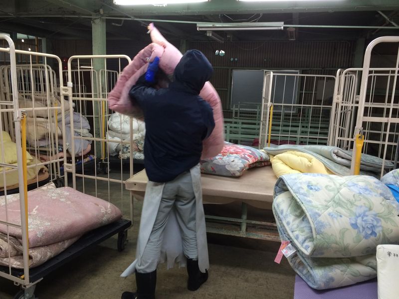職場環境 お布団・カーペット等のクリーニング工場です。 着物・毛皮・皮革衣類等の受注もしています。 喫煙所:喫煙所あり(屋外)