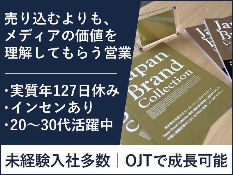 求めている人材 【必須】 ・高卒以上 ・普通自動車運転免許(AT限定可) ------------------- <こんな人に向いています> ・同じ場所で働くより、外に出て動く仕事が好き ・初めての土地でも臆せず行動できる ・自分で考えてスケジュールを組む働き方が合う ・数字や成果から逃げずに向き合える ・任された仕事を最後までやり切れる <こんな人は難しいかもしれません> ・出張が多い働き方に抵抗がある ・決まった勤務地で働きたい ・営業目標や数字にプレッシャーを感じすぎる ------------------- \ 働く社員の声をご紹介! / ■社員インタビュー① 前職は、雑誌や広告の撮影で使うスタジオのスタッフでした。 営業はまったく未経験です。 正直、最初は「出張が多い仕事ってどうなんだろう?」 という不安はありました。 でも入社前に、 出張の働き方や仕事の流れを丁寧に説明してもらえたので、 入社後にギャップは感じませんでしたね。 地方にある優れた企業やお店を取材して、 その魅力を世の中に届けていく仕事なので、 やりがいは大きいと思います! ■社員インタビュー② 前職は求人広告の営業をしていましたが、 「地方を盛り上げたい」という会社の考え方に共感して 転職を決めました。 富裕層をターゲットにした媒体で、 中小企業の魅力を発信していく ニッチな商材なのも面白いなと思いましたね。 この仕事は全国出張が多いんですが、 いろいろな地域を訪問して、その土地の景色や文化に触れられるのも 個人的には好きなところです。 「こんな場所に、こんなすごい会社があるんだ」 という発見も多くて、そういう出会いがこの仕事の魅力だと思います!