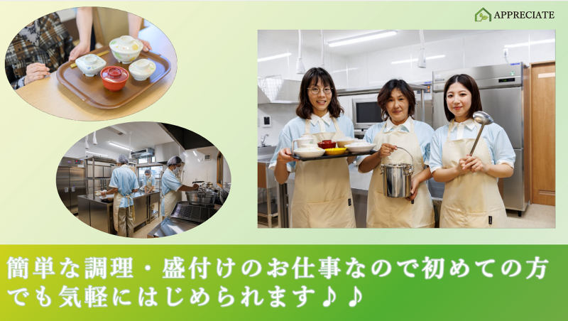 仕事内容: この求人のポイント ~~~~~~~~~~~~~~~~~~~~~~~ ■週2日~勤務OK ■扶養内OKなので、ママさん・主婦さんも働きやすい♪ ■カンタンなお仕事なので、経験や資格は一切不問! ~~~~~~~~~~~~~~~~~~~~~~~ 【仕事内容】 調理補助のお仕事になります。 <食事の準備> 料理を温める・盛り付ける・食事を運ぶ <食事の片付け> 下膳・食事の洗浄・片付けなど 簡単なお仕事です♪ <働きやすい職場環境が魅力!> いつもの家事の延長線上で、 気軽にはじめられるのが、調理補助のお仕事。 主婦(夫)さんが多数活躍中です◎ あくまで行うのは「補助」なので、難しい仕事はありません! ブランクがある方や、未経験の方もご応募OKです! 調理補助のお仕事にチャレンジしてみませんか? 経験や学一切一切問いません◎ 人物重視の採用です!
