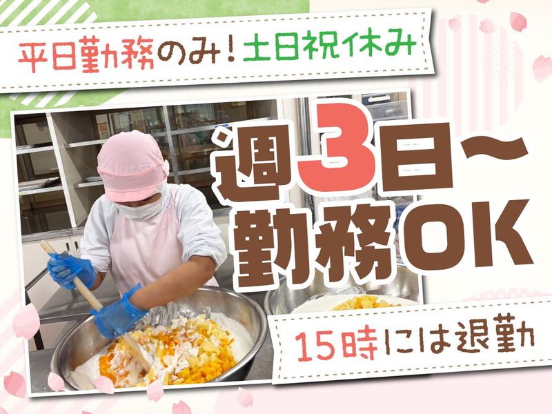 仕事内容 ✅30代~50代活躍中!未経験歓迎 ✅週3日~勤務OK!日数は応相談◎ ✅土日祝休み&学校と同じ長期休暇あり! ✅ご家庭の「調理スキル」が仕事になる✨ 中学校・近隣の小学校の 給食づくりをお手伝い。 野菜のカットや盛り付けなど、 お任せする仕事は普段の家事と ほとんど変わりません。 伸び盛りの子ども達に 栄養満点の給食を届けるため、 沢山の食材を切ったり煮たり…。 量自体は多いですが、 調理師リーダーを中心に、 他スタッフと協力しながら 進めていけるので 経験や知識は一切不要です◎ ┈┈┈┈┈┈┈┈┈⿻*.· \お任せする仕事内容/ ■野菜の洗浄・カット ■調理補助(煮る・焼く・和えるなど) ■おかずの盛り付け・配膳準備 ■食器・調理器具の洗浄 ■厨房内の清掃・片付け ⭐献立は市で決まっています⭐ メニューを考える必要なし! 健康的な献立が決まっており、 レシピ通りに作るだけでOK。 気になるメニューがあれば、 ぜひご家庭でも作ってみてください♪ ┈┈┈┈┈┈┈┈┈⿻*.· ====================== 《「包丁が使える」だけでOK✨》 ====================== 「家族のために毎日料理を作ってきた」 「野菜の千切りならお任せ」 そんな経験が何よりの強みになります。 大量調理ならではのコツや手順は、 ベテランスタッフがしっかりフォロー! 久しぶりのお仕事復帰という方も、 安心して料理の腕を活かせます♪ ====================== 《週3日~勤務OK!夕方前には退勤》 ====================== 土日祝に加え、夏・冬・春休みも 学校と一緒にお休み♪ お子さんの予定に合わせやすく、 預け先の心配もありません。 ご家庭都合でのシフト調整もできるので、 お気軽にご相談ください!