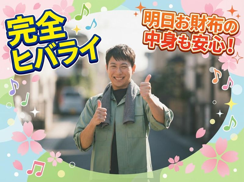 仕事内容 \現場作業スタッフ募集/ 特別な資格をお持ちでなくても始められます! やる気があればOK◎ 人柄重視の採用を行っています★ ▼求人のポイント▼ ============== ✅資格・学歴・年齢・性別一切不問 ✅全額日払い制度あり ✅突然の出費・支払いにも強い! ============== 【仕事内容】 ・現場掃除 ・資材運搬 ・職人補助 など現場の案件や職人さんが効率良く動けるよう サポートをしていただきます! 現場作業のお仕事が未経験の方でも まずはできるお仕事からお任せします! 先輩スタッフや社員スタッフが しっかりサポートすするのでご安心ください◎ ★基本的なマナーがあればOK★ 実際の職場でのお仕事の基本は 「きちんと挨拶をする」 「身だしなみを整える」 「明るく元気に対応する」 など基本的なマナーが必要ですが逆に言えば、 そこを最低限しっかりできればこの仕事は実務経験は少なくても大丈夫です。 ★あなたの都合で働けます★ 週1日勤務、フルで週5日勤務、 他の仕事と掛け持ちしながら月1勤務など… あなたの働きたいご都合をお聞かせ下さい! 現在働いているスタッフのシフトも様々です! 週1、2日勤務や週5勤務、月1勤務で 年に12回の勤務など様々な働き方が実現できますよ!