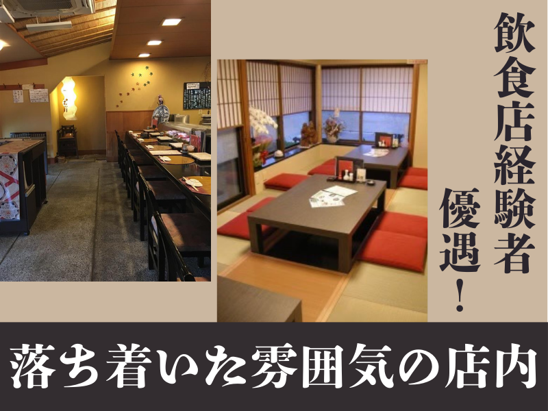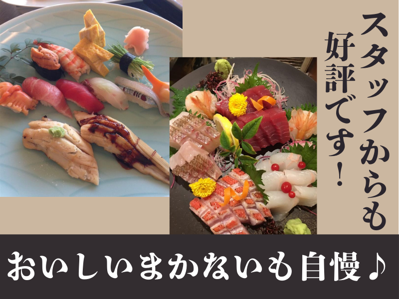 仕事内容 / 平日ディナー帯 土日ランチ帯orディナー帯 に勤務できる方の募集! \ 週2・3日勤務できる方★ 4月からのバイトデビュー・職場復帰も大歓迎✨ 先輩が丁寧に教えていくので安心して下さいね◎ ☝この求人のPOINT ………………………… ✅ 週2・3日の勤務 ✅ ランチもディナーも短時間勤務 ✅ おいしいまかないあり! ✅ ディナーは学生さん、 ランチは主婦さんが活躍中◎ ………………………………………………… <仕事内容> 旬の食材を先取りし、店主厳選の魚介類のみを扱う 昔ながらと今が融合した地元で愛される お寿司店でのホール業務をお願いします。 ●具体的には… ・お客様のご案内 ・料理の提供 ・レジ など 未経験の方は丁寧に教えていきますし、 飲食店経験がある方は 今までの経験が活かせます◎ ――――――――――――――― ✨学生・主婦さんが活躍中! …………………………………… 幅広い年代のスタッフが活躍しています! 地元の主婦パートさんは お子さんが学校の合間に働けるランチ帯、 学生さんは平日の学校終わりや、 土日メインで活躍しています! スタッフ同士の仲がよいので 困ったことがあれば先輩がフォロー してくれるので安心して下さいね☆ 家庭的な雰囲気なのですぐに なじむことができますよ♪ おいしいまかないもスタッフからは好評です☆