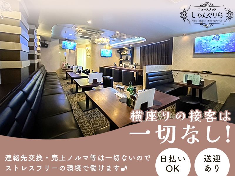 メッセージ のんびり・まったりな雰囲気♪ 「にぎやかなお店はちょっと...」 という方にぴったりのスナックです◎ 札幌No.1の大手コンカフェグループが 運営しているから、“安心感”と“安定感”は抜群! コンカフェ風の新時代のスナック... それが”ニュースナック しゃんぐりら”なのです♪ トラブルの元になるような連絡先交換、 ノルマ、罰金、指名制度度はありません!! 業界初で、キャストさんに社会保険制度を導入♪ 【社会保険制度あり】未経験者さん大歓迎♪ 札幌の大手コンカフェグループが運営するスナックです♪ 飲食店運営