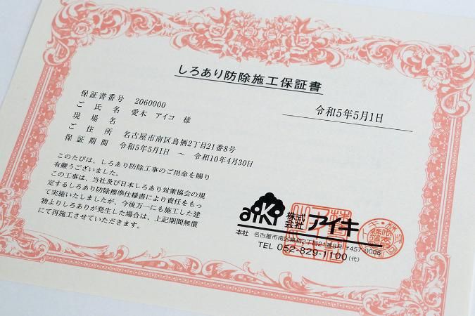 仕事内容 ====================== 働きやすさ重視の方、注目です!! ====================== ☆年間休日120日以上×残業ナシ! 自分や家族との時間も大切にできる! ☆全くの未経験でOK! ヤル気と普通免許があればOK! ☆稼げます! 資格も取って成長し、年収500万円を 目指しましょう! 【仕事内容】 住宅の点検と簡単な予防工事をお願いします! 【具体的には】 ちょっと狭いですが 床下に入ってもらい、 点検と簡単な作業を行います。 シロアリを予防するために散布する 薬剤は、住む人はもちろん、ペットにも 無害なものを使用します。 作業は2~3人で行うので、 協力しながら進められます◎ 先輩たちがゼロから丁寧に サポートしますので安心です! / 残業ナシが基本! これが令和の働き方♪ \ だいたい15~17時に 会社に戻って、報告書の入力や 道具の手入れをしたら退勤! 残業はほとんどないので、 夜は家族と夕飯を囲んだり、 ゆっくり動画を見たりと、 しっかり体を休められます! 年間休日120日以上! 祝日がある日は週3休になることも! ワークライフバランスが整う 働き方が可能です! 【先輩の声】 正直、最初は 『虫は苦手だし、床下って怖そう』 と思っていました(笑)。 でも、最新の防護服とヘッドライトを 装備するので、思っているほど実は そこまで汚れません。 薬剤も進化していてそこまで臭くないし、 何より17時に終わって祝日がある週3連休。 年間休日120日以上!という生活が最高です。 前職では考えられなかった 自分時間が手に入りました! <株式会社アイキ> 弊社は創業47年を誇るシロアリ防除の 専門企業です。これまでに25万件以上の 施工実績を持ち、東海エリアの住宅を 守り続けてきました。 私たちは予防工事を重視し、住宅会社と 連携して安心な住環境を提供しております。 名古屋市内 千種区・東区・北区・西区・中村区 中区・昭和区・瑞穂区・熱田区・中川区 港区・南区・守山区・緑区・名東区・天白区 から通うスタッフも多数活躍中! ★興味・関心がある方はぜひ 『ブックマーク』ボタンを押して 保存してください。