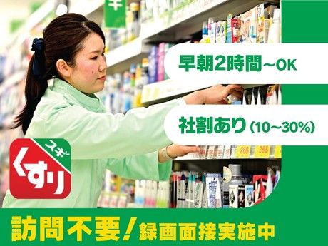 仕事内容 家事や子育てとの両立も応援!!働きやすさもスキルアップもスギ薬局で叶います! ―――――――――――――――――――― 年齢・学歴・経験・資格は一切問いません! 7割が未経験スタート!初心者さんも安心 10代の学生さんから60代主婦(主夫)活躍中 週2日、1日2hの短時間│オトクな社割あり 座学や動画マニュアルで商品・接客が学べる ―――――――――――――――――――― <仕事内容> 開店前の早朝時間帯に、 医薬品や生活用品などを箱から出して 棚に並べていく品出しのお仕事です。 さまざまな商品を取り揃えるスギ薬局で 欲しいものをすぐに見つけられる キレイなディスプレイをお願いします! 慣れればテキパキ進められ、集中していると あっという間に終わるカンタンなお仕事です。 <うれしい社割あり> ・日用品:10%オフ ・カウンセリング化粧品:30%オフ 「スギ薬局の商品は生活必需品ばかりだから家計が助かる」 「仕事ついでに買って帰れるからラクちん」と、 稼ぎながら賢く節約しているスタッフも! 適度に身体を動かすお仕事なので、 健康維持にも役立ちますよ! <バイトデビューしたい方も応援!> 未経験から始めた先輩が多いからこそ、 同じ目線でやさしく指導します。 地域の皆さまと仲間への 思いやりさえあれば始められるお仕事です!