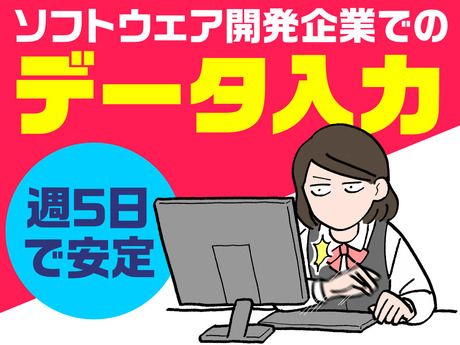 仕事内容 ソフトウェア開発企業でのデータ入力 / 派遣デビュー歓迎! 週5日安定勤務♪ \ 人気のデータ入力のお仕事★ スキルや経験も活かせます♪ <具体的には…> ・マニュアルに沿ってシステムにデータを入力 初めての方でも半日あれば覚えられます! それでもわからないことは先輩staffが 丁寧にサポートするので安心して下さいね♪ コツコツ作業が好きな方にオススメ♪ 少しでも気になったらお気軽にご連絡ください★ ★☆ 短期・長期歓迎 ☆★ ●働き方は自由自在! ●スキマ時間や空いている日を有効活用できる! ●長期で稼げる◎レギュラーワーク! ━━━━━━━ ★こんな方に★ ━━━━━━━ ■長期休暇に自由にお金を使いたい! ■週末の飲み会に向けてお金が欲しい ■会話少なめで簡単な仕事が欲しい など ★☆嬉しいメリットを教えてください!☆★ 【1】日払いOK 「急な出費のときに本当に助かる…」 「欲しいものがすぐに買えます♪」 「遊ぶ予定の前にサクッと稼いでます!」 【2】短期OK 「長期休みのときだけ働いてます!」 「次の仕事が決まるまでの"繋ぎ"で」 「季節限定のオシゴトだけ♪」 【3】シフト自由 「週1、2日で無理なく働けてます◎」 「学校がない土日メインのシフトです!」 「夜勤も選べるのでWワークで働いてます」 ★☆ スタッフの声 ☆★ 「家庭と両立して働けています。 子育てが落ち着いたらもう少し シフトを増やしてみようかな!」 「アルバイトをしていたけど 急にシフトに入れなくなって 困っていたときに応募しました!」 みなさん、学校・家庭・他のお仕事など と上手に両立しながら働いていますよ♪