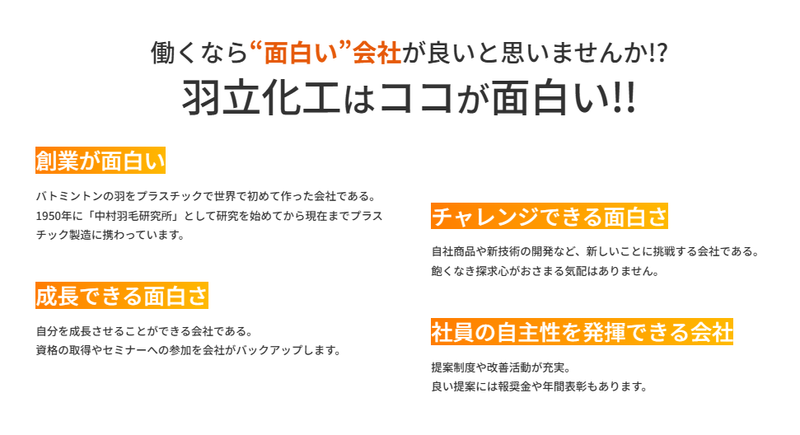 仕事内容 *‥‥*‥ アピールポイント ‥*‥‥* ✨地域未来牽引企業に選出された成長企業 ✨未経験OK!先輩社員が丁寧に指導 ✨年間休日119日! ✨工場の「仕組みづくり」に関わる仕事 ✨風通しが良く質問しやすい環境 *‥‥*‥‥*‥‥*‥‥*‥‥*‥‥* ┏────────────────┓ 賞与あり/年2回! 年間休日も119日あるため プライベートも充実させられます! ┗────────────────┛ ⭐具体的なお仕事  ̄ ̄ ̄V ̄ ̄ ̄ ̄ ̄ ̄ ̄ ̄ ̄ ̄ ̄ ̄ ̄ ̄ ̄ ̄ プラスチック製品を 「より早く・安定して・ 効率よく 作るための仕組みづくり」 を担当する 生産技術の仕事です。 現在は人の手で行っている工程について、 「もっと楽に作れないか」 「自動化できないか」を考え、 設備や工程の改善を進めていきます。 ✅工場スタッフへのヒアリング (困りごと・改善点の確認) ✅生産工程の課題分析・ 改善アイデアの検討 ✅自動化設備(FA)や 新しい生産システムの導入検討 ✅設計・開発部門との打ち合わせ ✅生産効率・コスト削減につながる 仕組みづくり ⭐生産技術の仕事とは  ̄ ̄ ̄V ̄ ̄ ̄ ̄ ̄ ̄ ̄ ̄ ̄ ̄ ̄ ̄ ̄ ̄ ̄ ̄ 「現場」と「設計」をつなぐ役割。 実際の製造現場を見ながら、 「どうすればもっと作りやすくなるか」 を考え、形にしていきます。 専門知識は入社後に身につけられるため、 製造業が初めての方も 安心してスタートできます。 ⭐仕事のやりがいと働きやすさ  ̄ ̄ ̄V ̄ ̄ ̄ ̄ ̄ ̄ ̄ ̄ ̄ ̄ ̄ ̄ ̄ ̄ ̄ ̄ 改善した仕組みが現場に定着し、 生産効率が上がったときには 大きな達成感があります。 一人で悩むことはなく、 チームや関係部署と相談しながら 進めるため、未経験の方も安心です。 また、工場では自動化や新技術の導入を さらに進めることで、働きやすさと 生産性の両立を目指しています。 現場の声を大切にしていて、 改善提案が反映されやすい職場です。 ⭐未経験でも安心の環境  ̄ ̄ ̄V ̄ ̄ ̄ ̄ ̄ ̄ ̄ ̄ ̄ ̄ ̄ ̄ ̄ ̄ ̄ ̄ ▶入社後 ・工場の流れや製品知識を 学ぶところからスタート ▶徐々に ・生産工程の分析 ・設備や自動化に関わる業務へ ステップアップ 先輩社員が丁寧に教えるため、 業界未経験・第二新卒の方も 安心して成長できます。 ⭐第二新卒&未経験歓迎  ̄ ̄ ̄V ̄ ̄ ̄ ̄ ̄ ̄ ̄ ̄ ̄ ̄ ̄ ̄ ̄ ̄ ̄ ̄ 当社は人柄重視の採用を行っており、 製造業が初めての方や第二新卒の方も 歓迎しています。 仕事はチームで協力して進めるので、 わからないことはその都度聞きながら 覚えていけます。 自分から学ぶ姿勢を大切にできる方を お待ちしています! ⭐スタッフインタビュー  ̄ ̄ ̄V ̄ ̄ ̄ ̄ ̄ ̄ ̄ ̄ ̄ ̄ ̄ ̄ ̄ ̄ ̄ ̄ ▶担当者Aさん 「成型条件の変更には決まった正解がなく、 製品ごとに条件を調整する必要があります。 最初はうまくいかず不安になることも ありましたが、先輩の作業を見て学び、 製品が安定して作れるように。 そんなとき、達成感を感じています」 ▶先輩社員Bさん 「難しい案件ほど、やりきったときの 達成感は大きいですね。完成した製品を 送り出すときは、わが子を送り出すような 気分になります(笑)。 最近は生産現場も大きく変わり、 実行率や生産性が上がっただけでなく、 作業が楽になったと感じています」 ⭐羽立化工(はたちかこう)について  ̄ ̄ ̄V ̄ ̄ ̄ ̄ ̄ ̄ ̄ ̄ ̄ ̄ ̄ ̄ ̄ ̄ ̄ ̄ 1950 年創業。湖西市で70年以上続く、 プラスチック成形の老舗企業です。 私たちが得意とするのは、軽くて丈夫な 「ダブルブロー成形」という独自の技術。 この技術で作られた製品は、楽器ケースや 自動車パーツとして、日本中、そして 世界中で使われています。 地域に根ざし、世界を支える 「実はすごい」安定企業で、 あなたも一緒に働いてみませんか?