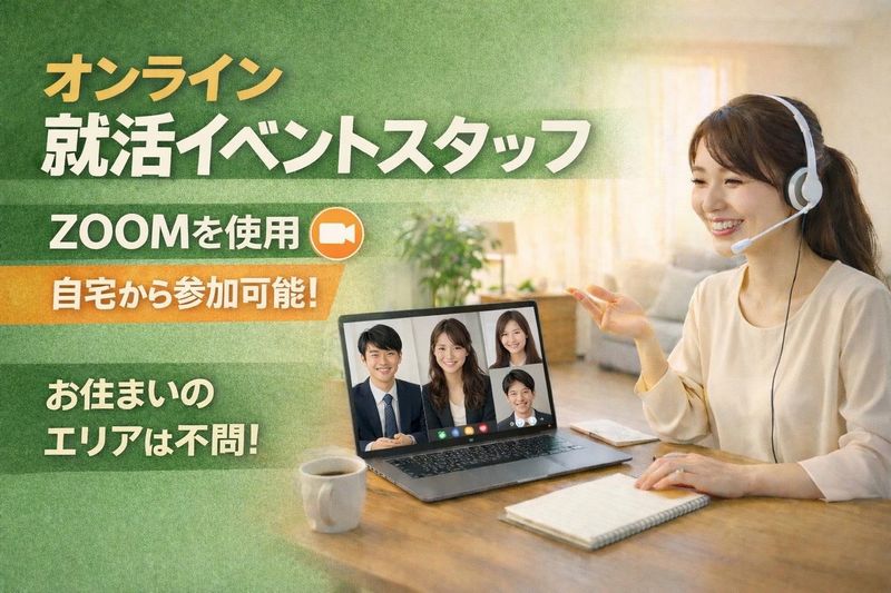 仕事内容 ✅完全オンラインで参加のイベントスタッフ ✅事前説明会参加で特典有 ✅1回60分の単発イベント業務 ✅就活トークイベント参加 ✅週払いで報酬支給 ▼仕事内容 大学生を対象としたオンライン就活イベントに参加していただく仕事です。 ZOOMを使い、現在見ている業界や就職活動の状況などをお話ししていただきます。 イベントはスタッフが進行し、会話形式で進むため難しい作業はありません。 完全オンラインで実施するため、自宅などインターネット環境があれば参加できます。 PCのカメラとマイクを使用して、ZOOMで参加していただきます。 ▼<具体的には…> ・ZOOMイベントに参加 ・現在見ている業界や職種について共有 ・就活の進み具合について簡単なトーク ・イベント終了後の簡単な確認 ZOOMにログインすると、イベントがスタートします。 最初にスタッフから簡単な説明があり、その後は会話形式で進行。 60分ほどで終了するため、授業の合間などにも参加しやすいイベントです。 <⭐完全オンラインイベント> ZOOMを使用したオンラインイベントです。 勤務地へ出社する必要はなく、自宅や学校などインターネット環境があれば参加できます。 服装の指定はなく、私服で参加している学生がほとんどです。 PCのカメラとマイクをオンにしてイベントに参加していただきます。 <⭐お小遣い稼ぎに1回60分の単発> イベントは1回60分の単発です。 勤務時間は9:00〜20:00の間で参加できる時間を選べます。 授業の空き時間や予定の合間に参加する学生も多く、短時間で完結する仕事です。 <⭐時給1800円・週払い> 報酬は時給1800円です。 支払いは週払いで、就業した週の土曜日に振込みとなります。 短時間でも報酬が発生するため、効率よく収入を得たい学生にも参加されています。 <⭐就活のヒントが見つかる場> イベントでは、さまざまな就活の話題が出てきます。 他の学生が見ている業界や企業の話を聞く機会もあり、就職活動を考えるきっかけになることも◎ 就活を始めたばかりの方にも参考になるお仕事です。