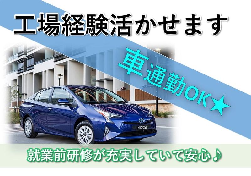 【保険制度】 雇用保険、労災保険、健康保険、厚生年金 待遇・福利厚生 【福利厚生】 ・有給休暇 ・食堂完備 ・作業着無償貸与 ・個人ロッカー完備 ・車、バイク、自転車通勤可能 ・寮ご希望の方ご相談ください