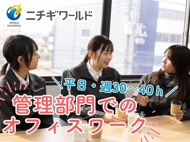 アピールポイント: 2026年1月1日、「日本技術センター」から「ニチギワールド」へ社名が変わりました。 新たなブランドのもと、さらなる成長と挑戦を続けています。あなたの新しい一歩を、私たちと一緒に踏み出しましょう。 * 勤務時間、日数などは相談OKです * 土日祝休み、長期休暇あり * お休み相談しやすく柔軟な働き方ができる * 開始日相談OK * 転勤なし 20代~40代と幅広く女性活躍中の職場です! 柔軟な働き方ができるので子育て世代の方もたくさん活躍中!