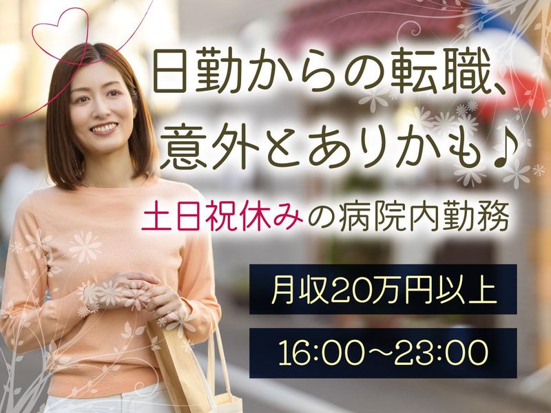 仕事内容 (・д・)えっ…!!時給1500円?! しかも時間は1日6時間だけ?! それでも月20万円以上稼げるの?! …でもきっと、経験者募集でしょ? 未経験OKでそんな好条件あるわけ…… \あ り ま す!!!!/ ⭐未経験OK・無資格OK! ⭐16:00~23:00の準夜勤! ⭐お仕事はカンタンな軽作業! ✅駅から徒歩圏内 ✅安定の医療業界 なのも高ポイントです✨✨ また、オープニング募集だから 同時スタートの仲間もいて安心ですよ♪ 「日勤から切り替えたい」 「短時間×高時給で効率よく稼ぎたい」 など応募動機はシンプルでOK◎ ⭐ 給与前渡し制度あり⭐ 働いた分を前もって受け取れるから、 急な出費や予定外の出費があっても安心! ▼ひと足先にお仕事開始したSさん▼ 介護施設で日勤のパートをしていましたが 給料も上がらずあんまり稼げなくて。 転職を考えている時に見つけたのがこちらでした! 日勤希望だったので最初は悩みましたが ✅夜勤がない・時間固定シフト ✅高時給 なところが決め手になりました♪ 前より働く時間が短くなったのに 月収はそこまで大きく変わらないので 転職してすごく満足してます! 昼間に自分の時間ができたので 最近は趣味のハンドメイドで 在宅の副業始めようかな…って思ってます♪ ∴‥∵‥∴‥∵‥∴‥∴‥∵‥∴‥∵ 今回募集するのは 病院内での【看護助手】です! 医療の資格も経験も知識もいらない 患者様や看護師さんを裏からささえる やりがいのあるお仕事です。 ▼お仕事の詳細はコチラ▼ 病院の病棟で看護助手業務をお願いします。 *シーツ交換 *夕食の配膳・下膳 *病室内の簡単な清掃(ごみ捨てなど) *物品補充(ピンセットやガーゼなど、軽いものばかり) *メッセンジャー業務(物品や書類を指示された場所へ配送する業務) その他看護師さん・患者様のサポートをお願いします! 【1日の流れ(例)】 ■16:00~ 更衣室で着替えて、お仕事開始! ■16:10~ *シーツ交換やベッドメイキング *お薬や書類の運搬、検体搬送 *患者さまの移送(看護師さんと行います) ■18:00~ *お食事の準備 *患者さまの食事の見守り、食事量のチェック(看護師さんと行います) *食堂の片付け *口腔ケアの物品の準備・片付け ■19:00~ *物品の補充(ペーパータオルや消毒液など) *車いすや点滴スタンドなどの点検 *薬剤カートに残っている薬剤を整理 ■20:00~ 休憩 ■21:00~ *薬局で新しい薬局カートと交換 *ポータブルトイレや尿器の交換 ■22:40~ リーダーの看護師さんに報告 ■23:00~ 更衣室で着替えて、お仕事終了! 年齢も性別も気にせず 未経験から働ける看護助手のお仕事♪ 気になった方はお気軽にご応募ください! 働くうえで困ったことや不安なこと 勤務条件についてのご相談は あなた専属のコーディネーターが 何でも相談にのります◎