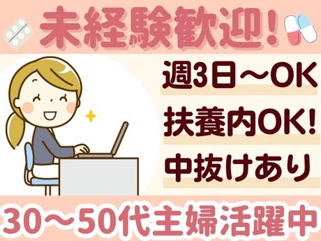 仕事内容 \ 家庭と無理なく両立できる職場★30~50代の主婦さん活躍中! / 週3日~OK!家庭やプライベートの予定に合わせて働けます◎ もちろん扶養内勤務も可能なので希望の働き方をご相談下さい! お子さんの学校行事によるお休みはもちろん 家族の体調不良による急なお休みなども対応するので 家族も大切にしながら働ける環境です◎ 午前と午後の間には中休みがあります。 家に帰って家事を済ませたり、自分の時間に使ったりと ライフスタイルに合わせた働き方が可能です 家庭とメリハリとつけて働けると好評です! 「どうしてもこの日は午後入れない…」 など時間についてもお気軽にご相談下さいね! ◆仕事内容 調剤薬局に来られた患者様の受付や会計、 薬剤師のサポートなどをお願いします。 ◎具体的には… ・来局された患者様の受付 ・会計対応 ・カルテやレセプトの入力 ・薬のピッキング補助 ・在宅補助業務 ・簡単なデータ入力 などをお願いします。 ――――――――――――――――――――― ◎薬のピッキング補助とは… ――――――――――――――――――――― 薬剤師の指示のもと行います。 また、必ず薬剤師が最終チェックを行います。 ――――――――――――――――――――― ◎在宅補助業務とは… ――――――――――――――――――――― 患者様のご自宅に伺って服用そのものをサポートするものではなく、 薬の飲み間違いや紛失を防げる形にしてお薬をお届けする作業です。 具体的には小分けされた薬を一つずつ カレンダーにセットし、患者様や施設へお届けします。 やり方やコツはきちんと決まっているので 先輩がしっかりと教えていくので安心して下さいね◎ 施設へのお届けもあるため月に60名程度用意します。 ※運転は社用の軽自動車を使用します。 遠くても片道40分程度。 職場復帰応援!未経験でも安心のサポート体制★ お仕事内容はOJTで先輩が丁寧に教えていくので 一つずつできることを増やしていきましょう◎ また、店舗は基本2名体制なので 困ったことがあってもすぐに聞ける環境です! 活躍しているスタッフのほとんどが未経験からスタートしています。 同じように初めての一歩を踏み出した先輩が多く、 新人の気持ちを理解しながら一つずつ丁寧にサポートします。 「わからないことをすぐに聞ける」 「無理なく慣れていける」そんな環境です。