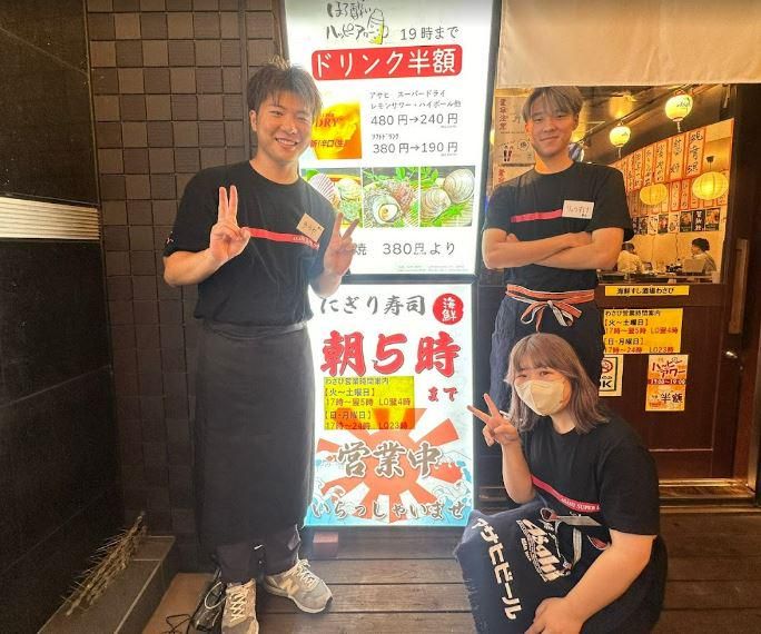 仕事内容 \★この求人のアピールポイント★/ ✅金土含む週2日~&1日3h~OK! ✅時給1300円!24時以降は高時給1500円 ✅髪型・髪色自由!ピアスも!オシャレOK ☆☆☆職場・仕事の魅力☆☆☆ ⭐給与計算は嬉しい1分単位! ⭐アルバイト・パートデビュー歓迎♪ ⭐20代など学生が多数活躍中のお店! ◇お仕事内容◇  ̄ ̄ ̄ ̄ ̄ ̄ ̄ ホール業務もしくは、 キッチン業務選んで働く事が可能です! ホールでは、 お客様の案内からオーダー取りや、 料理の配膳やお片付けをお任せします♪ お客様の席にタブレットのオーダー端末を 導入しているのでオーダーを取るのも 簡単ラクラク!すぐに慣れます◎ キッチンでは、 盛り付けなどの簡単な調理補助や、 レシピに沿って調理をお任せします! まずはできることから! いきなり全部は任せないので、 一つずつお仕事を覚えていきましょう◎ ◇オープニングスタッフの2次募集◇  ̄ ̄ ̄ ̄ ̄ ̄ ̄ ̄ ̄ ̄ ̄ ̄ ̄ ̄ ̄ ̄ ̄ 新店のオープニングスタッフの募集です! 先輩スタッフや社員が、 お仕事を一つ一つ丁寧に教えますよ♪ 入りたてのスタッフもいるので、 一緒に着実に覚えていきましょう◎ みんなでお店を作っていく楽しさも 味わえますよ!!