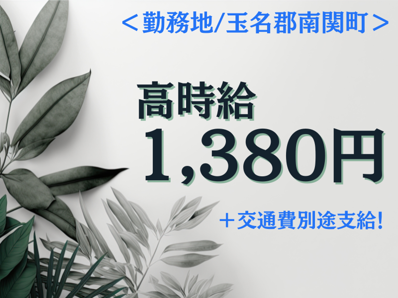 【時給1380円】16:30終了で、夜の時間がグッと長くなる!高時給×早めの帰宅で、理想のワークライフバランスを叶えませんか?<南関町・未経験歓迎>