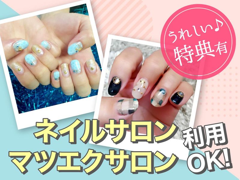 【保険制度】 雇用保険、労災保険、健康保険、厚生年金 待遇・福利厚生 【福利厚生】 ◇賞与あり ◇服装、髪型自由 ◇髭・ピアス・ネイルOK ◇入社お祝い金制度あり(規定あり) ◇交通費規定支給 ◇入社半年後 テーマパークチケットプレゼント ◇昇給あり ◇ネイル・マツエクサロン利用OK ◇休憩所完備 ◇社員旅行あり(自由参加)