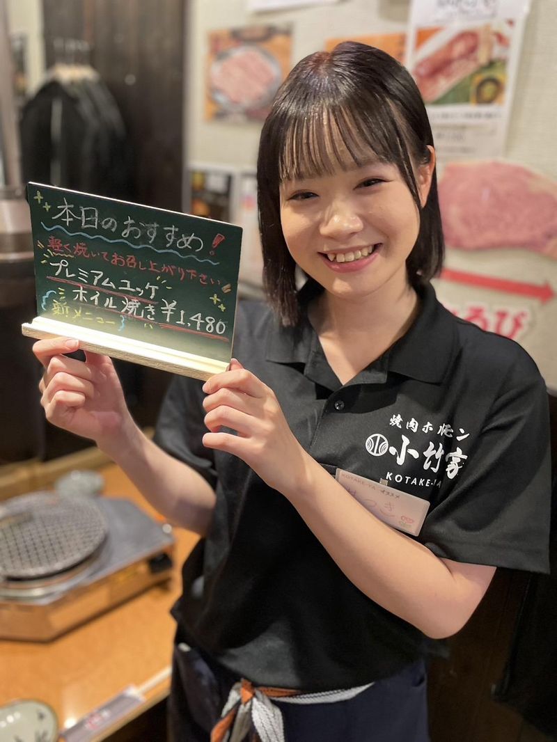 仕事内容 ⭐驚異の高時給&週2日~・1日3h~OK⭐ 千葉駅近くの人気焼肉店で お財布も・おなかも喜ぶバイトを発見! 年末に向けた増員スタッフを大募集✨ ✅夕方スタート♪週2日×1日3h~OK ✅2週ごとの希望申告制シフト ✅WワークOK!即日勤務も可 ✅美味しいまかないが無料♪ ✅バイトデビュー大歓迎&高校1年生~可 ✅髪色・髪型自由♪ネイル・ピアスOK 食肉卸売・加工を行う精肉卸問屋直営! 【焼肉 ホルモン 小竹家】は、 とにかく喋る事が好きで、 お客様とのコミュニケーションがとれて お店を共に盛り上げてくれる 新しい仲間を大募集します! 温かい接客で焼肉を提供する人気店! 【仕事内容】――――――――――― 「焼肉 ホルモン 小竹家 千葉本店」にて ホール・キッチン業務をお願いします。 ホールでは、お客様のご案内、 オーダー取りや料理・お肉の配膳、 レジでのお会計など。 キッチンでは、お皿への盛付けや 焼肉カットなどの調理補助、食器洗浄 などをお任せします。 「接客が好きなのでホールがやりたい」 「料理を覚えたいからキッチンで」 など希望も考慮します! 焼き網からはみ出るほどの大きさの 「でかるび」(直径26cm)など、 お客様から大好評の人気メニューも多数。 常連のお客様も多い人気店です。 ―――――――――――――――――― ⭐未経験も大歓迎! 飲食店でのアルバイト・パート経験 がある方はもちろん歓迎しますが、 未経験の方も大歓迎です! 最初は笑顔でお皿を運んだり、 簡単なことからスタートしましょう! ⭐楽しみながら成長できる! 高校生・大学生・専門学生・フリーター さんを中心に10~30代の スタッフが多数活躍中! スタッフ同士も仲が良く、和やかな 雰囲気で楽しく働けるのも魅力。 「そろそろ網の交換タイミングかな」 「あのお客様はご注文しそうかも」 など、お仕事をしながら自然と 周囲を見る力やおもてなし力もUP! 将来の就職活動にも役立つスキルも 身につけることができますよ! ⭐頑張りはしっかり評価! 小竹家ではアルバイト・パートも がっつり昇給します! 入社10ヶ月で時給50円UPの実績も有。 バイトリーダーになれば さらに高時給も可能! 「卒業しても続けたい!」と、 学校卒業後も働き続けてくれたり、 アルバイトから社員へキャリアアップ したスタッフもいます。 ちなみに、社員になると 嬉しいインセンティブも♪ 「詳しく知りたい!」という方には 面接でしっかり説明します!