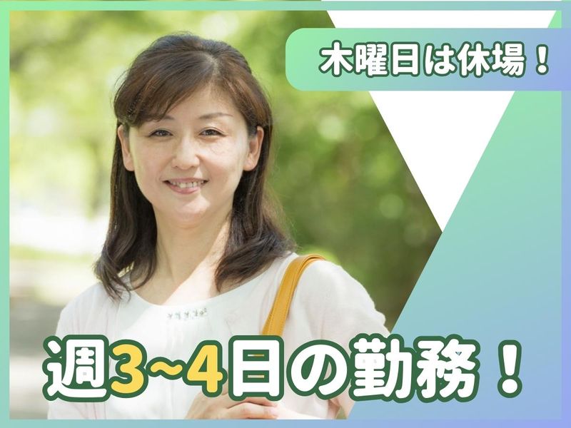 勤務時間詳細 【⏰フルタイム勤務】 ┗8:30~17:00(実働7.5時間・休憩60分) 【⏰ハーフ勤務】 ┗8:30~12:30(実働4時間・休憩なし) ★シフト制による週3日~4日勤務 ★毎週木曜日は休場日 -【働き方の一例】- <週3日フルタイムで勤務> 月曜:8:30~17:00 火曜:お休み 水曜:8:30~17:00 木曜:お休み(休場日) 金曜:8:30~17:00 土曜:お休み 日曜:お休み <週4日フルとハーフで勤務> 月曜:8:30~12:30 火曜:8:30~17:00 水曜:お休み 木曜:お休み(休場日) 金曜:8:30~12:30 土曜:お休み 日曜:8:30~17:00 シフトはお気軽に相談ください!