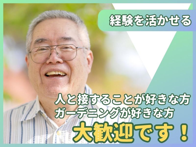 求めている人材 ✅未経験歓迎 ✅学歴。資格・経験は不問 公共施設でのお仕事のため、 公共性を意識しながら 丁寧に業務へ取り組める方を歓迎します! \こんな方にピッタリ/ ◎ガーデニングがお好きな方 ◎人と接することが好きな方 ◎体を動かすことが好きな方 ◎健康のためにもお仕事したい方 ◎安定的なお仕事をお探しの方 接客や受付、清掃や施設管理など 様々なご経験が生かせるお仕事です!