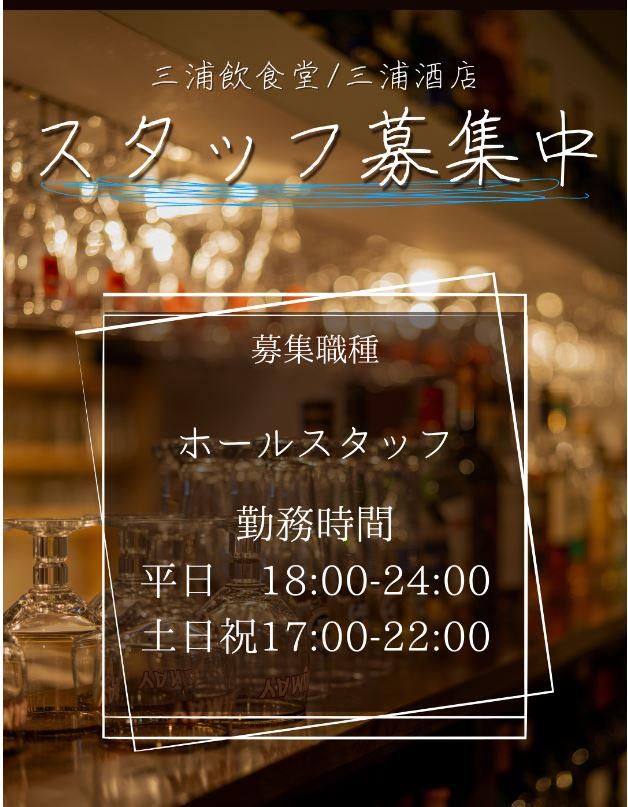 仕事内容 ✨つくば駅から徒歩1分 ✨お得な社割あり ✨車通勤もOK 100種類以上のクラフトビールや ワインが飲める!お洒落な造りが自慢の 【三浦飲食堂】にて、ホールスタッフを アルバイト・パートさんで募集します★ <主なお仕事内容> お席へのご案内やオーダー取り、配膳、 接客、ドリンク作りなどをお任せします。 洋酒を中心にお酒のメニュー豊富な当店★ お酒の特徴を覚えて、お客様にオススメ できる様になると、接客の面白さもUP! 店内のPOPづくりなど、一緒にお店を 作っていける楽しさもありますよ◎ 仕事を通じて自然とお酒や料理の 知識も身に付きます。 お客様にも人気のビールやワインを 社割でご購入できるところも大好評♪ <三浦飲食堂とは> 三浦飲食堂では、品質にこだわった 世界各国のワインとビールを、 バランス良くそろえています (ビール約200種、ワイン約500種)。 ビールに馴染みのない方や女性の方でも その方に合ったビールが見つかるよう、 自分たちの舌で確かめて、幅広く品ぞろえ しています。 もちろん、ビール通の方々にも満足して いただけるよう日々努力しています。 また、常に季節や料理に合わせたビールの 入れ替えを行っており、 お客さまにご案内しています。 当店名物のメンチカツサンドを筆頭に、 日々新鮮な食材を扱い、ドレッシングや ソースまで手作りにこだわり、お客様に 「美味しい」をご提供しております。 そしてホールスタッフは大学生を中心に、 お食事に合うお酒を工夫しながら ご提案、ご提供しております。 また、隣接された三浦酒店での接客や PC業務のお手伝いもあるので、 お酒の知識も身に付きます。
