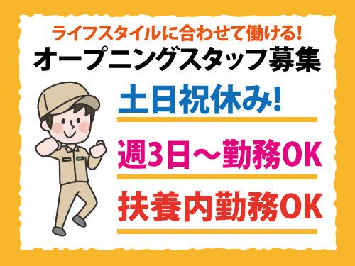 オープニングスタッフ募集!(第二弾) 土日祝休み/週3日~勤務OK/扶養内勤務・時短勤務OK!