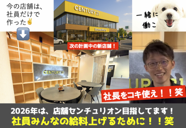 仕事情報 ● 仕事内容 【第1話】まず不動産売買仲介って何!? 僕たちの営業の仕事は、SUUMOなどから連絡のあったお客様に新築戸建/中古マンションの部屋にご案内するところから始まり、契約→引渡し等を行い、家を売りたい人と家を買いたい人をマッチングするのがお仕事です。1回の仲介手数料で、100万円超える事も多々、あなたの収入に反映♪ 【第2話】20歳で起業 みんなが思う「いやいや、20歳で不動産会社とか意味不明」。笑 でも、当社の社長は、20歳(2013年9月)の時に本当に北葛城郡広陵町でお店を出しました。 最初はめちゃくちゃで社員の扱いも雑で離職率100%の時期もありました!笑 今は社員が会社を決めるので、社員旅行も給料も社員で決めていく社員が経営する会社に! 【第3話】本部の研修制度 センチュリー21本部の研修制度があり、若いから会社が不安というお気持ち良くわかります! ですが、センチュリー21の本部スタッフが基礎の研修を行います。 よくある営業会社のように「いきなり本番」だったり、先輩の横について数ヶ月研修ではありません! 当社なら本部で研修!名刺交換の基本から学べる環境があります。 【第4話】退職希望者ゼロ 3年間退職率0%は、自分たちの会社は自分たちで作るから。 20代が集まる飲み放題×時間無制限で500円のみのBARも当社が運営してます♪ 話すのが苦手だけど、営業で稼いでみたいでもOK! 考えてみて下さい!20歳で不動産売買仲介を未経験で始めて12年経ってるぐらいです!稼げないと今も続いてません!笑 【第5話】SNSで発信中! ※1つデメリットは、会社がまだまだ小さくて、スタッフ数も少ない。 だけど、自分たちで作れる会社は他にないからこそ、私たちに共感してくれる人を求めて、Instagramで発信中♪ センチュリー21として、オープンしたのは2025年3月3日なので、これから一緒に助け合いながら、みんなで稼いでいきましょう!1人じゃない。