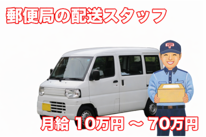 仕事内容 =================== ✨あなたの頑張りをしっかり還元✨ 《ライフスタイルに合わせて働ける》 =================== 【仕事内容】 郵便局の軽配送をお願い致します。 業務委託なので、自分のペースで働けます! 集中してガッツリ稼ぎたい方には ガッツリ稼げるコースをお任せします! ✅軽トラ貸出あり ┗車がない方でも安心! ✅元気で優しいスタッフしかいない! 社長をはじめ、スタッフは優しくて、 元気な面倒見の良い人が多い和気あいあいと した雰囲気のいい職場です! 逆に何か裏があるんじゃないか?と 疑っちゃうくらいいい人たちです!笑 しかも! ちゃーんと、あなたの頑張りを評価して 給与に反映してくれますし、社員同士の コニュニケーションが円滑なので 忙しいコースへのヘルプや、新人さんへの 研修や教育もしっかりと行うので安心♪ <こんな方におすすめ> ・Wワークで土日にガッツリ稼ぎたい方 ・脱サラして必死に働きたい方 ・今の会社の収入に満足していない方 ・体を動かして元気に働きたい方 ・楽しい職場で働きたい方 ==================== 配送エリア: 福岡県福岡市西区福重周辺 配送センター: 〒819-8799 福岡県福岡市西区石丸3丁目2−11 ※車通勤OK 最初に配送センターに集合して 上記の配達エリアに向かいます。 ====================