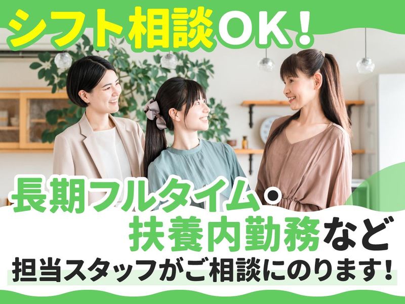 仕事内容 ―――――この求人のPOINT――――― ・週3日〜OK&1日5時間〜勤務OK ・未経験OK!クレーム対応なし事務 ・ネイル・髪色自由のオフィスワーク ―――――――――――――――――― 【子育てと両立しやすい柔軟シフト】 勤務は週3日〜、1日5時間からOK。 9時〜・10時〜など開始時間も選べるため、 「子どもを送ってから働きたい」 「夕方までの時短で働きたい」 という方にもピッタリです。 実際に子育て中のスタッフが多く、 学校行事や急なお休みにも理解がある職場。 家庭を大切にしながら働きたい方に 選ばれているお仕事です。 【未経験から始めやすい事務ワーク】 お任せするのは通販会社の注文受付事務。 電話で注文内容を確認し、 その内容をシステムへ入力する シンプルな事務作業が中心です。 難しい事務スキルは必要ありません。 クレーム対応もないため、 事務が初めての方でも安心して スタートしやすいお仕事です。 【自由度の高い働きやすい職場】 ネイル・髪色・服装は自由。 普段のスタイルのまま働ける リラックスしたオフィス環境です。 職場は女性スタッフが多く、 10代〜60代まで幅広く活躍中。 オフィスグリコも導入されており、 軽食や飲み物を気軽に購入できます。 人間関係も良く、 長く続けるスタッフが多い職場です。 【主な仕事内容】 通販会社での注文受付事務です。 具体的には ・お客様からの注文電話の受付 ・商品の種類や個数、送り先の確認 ・注文内容をシステムへ入力 ・システムを使った発送処理 事務作業はシンプルで、 入力業務が中心になります。 ※クレーム対応はありません。 【研修内容】 入社後は専任スタッフが担当し、 業務の流れを一つずつ丁寧にお教えします。 電話の受け方や入力方法など、 基本からしっかりサポートするため 事務未経験の方も安心です。 分からないことはすぐに 質問できる環境が整っています。