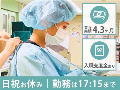 日祝休み!入職支度金あり◎17:15まで◇単身用社宅あり!賞与4.3ヶ月実績【西宮市、香櫨園駅、病院/オペ室、看護師、正職員】