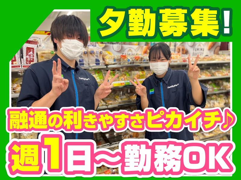 仕事内容 ➰電話応募も受け付け中➰ TEL:044-223-4581 ⭐未経験OK! ⭐学校帰りもテスト休みも対応します! ⭐友達と一緒に応募できる♪ / Family Mart川崎砂子店にて、 新規スタッフを大募集! ✨未経験・初バイト大歓迎!✨ \ コンビニ業務をお任せします! *接客業務 *お会計業務 *売り場づくり *商品発注 *清掃 難しい業務はなし! まずはレジからスタート! ✨1週間ほど研修があるので 未経験の方もご安心ください! =================== <スタッフ数> 【朝昼】アルバイト・パート:3名 ▶40代主婦:3名 【夕勤】アルバイト・パート6名 ▶20代:3名 30代:3名 ▶学生:3名 外国人:3名 【夜勤】アルバイト・パート:3名 ▶20代:3名 =================== スタッフの殆どが未経験から スタートした方ばかりです♪ スタッフはWワークをしている、 フリーターさんや専門学生さんも活躍中。 「ちょっと難しそうかも・・・?」 そんなことはありません! まずは出来ることからスタートします! 先輩たちが優しく教えていきますので 未経験の方でも安心して勤務出来ますよ! 月~金の平日のみの募集なので 突然土日もお願いされるかも…… なんて心配もナシ! =================== <オススメPOINT> ・未経験の方も大歓迎! ・残業ナシ!週1日~勤務OK! ・店長がとってもフランクで休みも取りやすい プライベートとの両立も可能◎ =================== 経験や資格によって昇給もありますので、 面接にて教えてください。 ✅週1日~勤務OK!! 旅行や学業などで1週間のうち 1回もシフトに入れない・・・もOK! なんでも相談してくださいね!