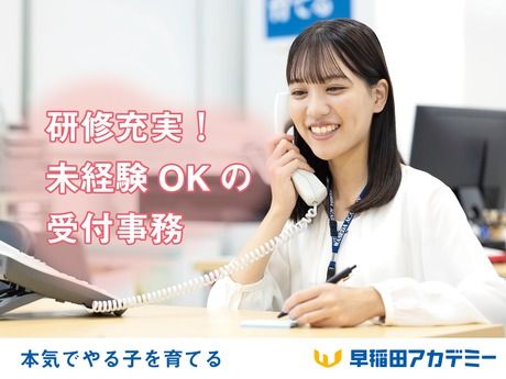 仕事内容 \タイパ重視の30分!/ ================== オンライン職種説明会 開催中 ================== カメラオフ・マイクオフでの参加OK 説明会後の選考勧誘などは一切なし まずはお気軽にご参加ください◎ - ◇毎月 第2・第4水曜日 19:00~19:30 ◇Zoom実施(予約不要) 【ミーティングID】 310-565-6701 ※パスワード不要 ※実施時間以外の接続はお控えください - 当日は、当社職員が 具体的な業務内容・キャリア・働き方に ついてわかりやすくご紹介。 ご質問も大歓迎です♪ 応募を迷われている方も、 ご参加をお待ちしております! ◆教育業界での実務経験がなくても、 培ってきた社会人経験は強みになる ・接客経験歓迎 ・生徒や保護者の受付 ・朝はゆっくりできる午後出社 接客・販売経験で コミュニケーションスキルを積んできたあなた。 中学・高校・大学受験といった、 目標をクリアするために努力をしてきたあなた。 そのような経験を 早稲田アカデミーで活かすことができます。 もちろん入社後には研修を行い、 受付の基本的な流れから、 よくある相談に対する対応など、 一つひとつの業務を丁寧にお教えいたします。 校舎受付事務の仕事は、 生徒の未来を支える大事な役割を担っています。 毎日生徒と笑顔で会話をし、 時には励ましながら 安心して通学できる環境づくりを 実践していただきます。 また、異業種で培った経験・スキルを ライフステージが変わっても発揮できるよう 環境整備にも力を入れています。 例えば 男性社員の育休取得実績も多数ある他 GW・夏期・年末年始休暇といった長期休みもあるため プライベートと両立しやすいのも高定着率につながっています。 加えて、勤務が昼12時からのため 買い物や通院、家事を済ませてからの出社が可能。 退社もほぼ定時のため 予定を立てやすいのも特徴です。 それが可能なのは パートスタッフを多数雇用することで 正社員への業務負担の軽減を図っているからです。 合格という目標に向けて頑張る生徒を、 間近で見守りながら、卒業シーズンで見られる 笑顔は言葉では言い表せないもの。 この経験は一生モノになります。 ◆早稲田アカデミー校舎での受付・入学案内・校舎運営サポートをお任せします 受付業務、入塾希望者対応をはじめ、 書類作成・備品管理などの校舎運営サポート業務。 生徒とやりとりする場面も多いため、「子どもが好き」 「人と関わるのが好き」という方が活躍できます。 ※「営業」要素はありません! 【仕事内容】 ■受付業務 塾に来る生徒を笑顔でお迎え。子どもや保護者の方からの お問い合わせ対応や、提出物の回収も行います。 ■入塾希望者対応 入塾希望の方への説明を行います。 説明後は、お預かりした書類のデータを入力します。 ■書類作成・備品管理 保護者の方へのお知らせなどの書類作成や、 その他消耗品の管理・発注など、庶務的な業務も担当。 書類作成は決まったフォーマットがあるので安心です。 【サポート体制】 入社後約1ヶ月は本社と校舎で研修を実施。 教務知識や、当社の商品知識、電話や来訪対応など 基本的な知識やスキルを身につけていただきます。 入社後第3週あたりからは、半日程度配属先の校舎にて OJT研修も実施。未経験でも問題なく戦力になれます!