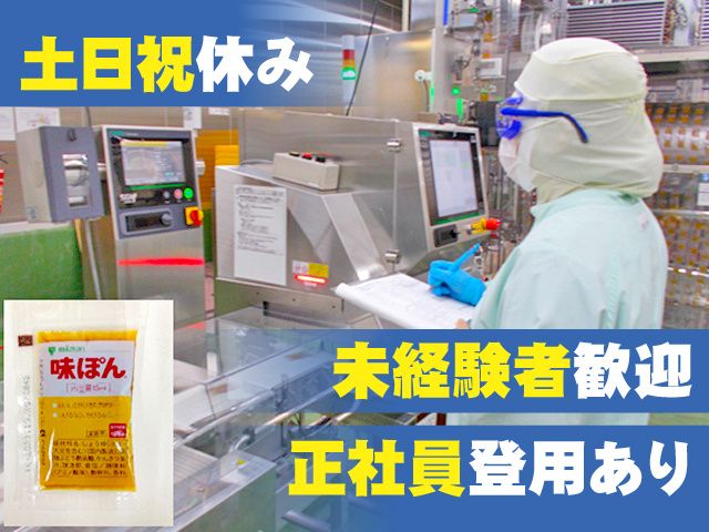 正社員登用あり/食品製造のカンタン補助業務 土日祝休み/未経験OK/見込み年収212万円以上