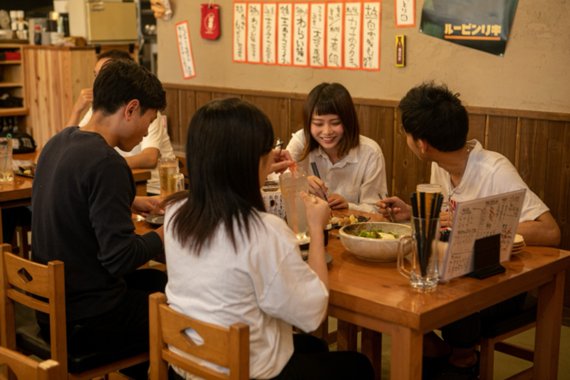 職場環境 学生中心に活躍しています。10代の高校生・大学生の方活躍しています。 福山大学方や岡山短期大学の方も活躍中です✨ 【客層】 席数50席で近くに住んでいる会社終わりの人やカップルや家族連れなど幅広い世代の方にご利用される居酒屋です。 店内はにぎやかな雰囲気