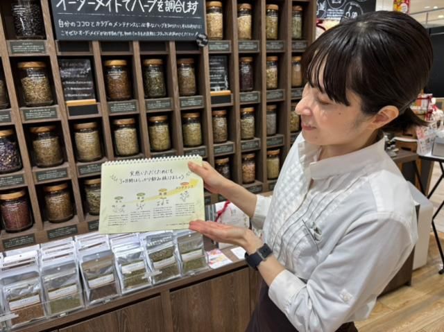 仕事情報 ● 仕事内容 一人ひとりのお客さまに最適なハーブやアロマをご提案するお仕事です。他にも商品の品出しやディスプレイ準備、清掃、試飲対応、発注・在庫チェックなど、店舗を支えるさまざまな業務にも少しずつ関わっていただきます。荷物を運ぶなど力仕事もありますが、お客さまの暮らしにそっと寄り添える、やりがいのある仕事です。 社風が伝わる特典 従業員特典でロゴ入りのポーチやバッグ、手帳などさまざまなグッズのプレゼントがあります。従業員の健康を願い、時には限定ハーブティーや親会社サントリーウエルネスのサプリメントが支給されることも。これらの特典は、ハーブとお客さまをつなぐ役割を担う従業員を大切にする社風が根底にあります。 充実の研修 お悩みに耳を傾け、丁寧に提案する接客スタイルだからこそ、自然とおもてなしの心や、美しい言葉づかいが身につきます。入店から2か月以内に4日間、勤務後も定期的な研修を行うため未経験者でも自分の好きなことを仕事にできます。仕事を通じて一生ものの知識や接客などのスキルアップにもつながる貴重な経験が得られます。 先輩スタッフの声 「なんとなく調子が悪くて」と訪れたエンハーブの店舗で、スタッフの方がじっくりと話を聴いてくれて、今の私に合ったハーブを丁寧に提案してくれました。香りに癒やされたのはもちろん、その優しさに触れて心がふっと軽くなった、あの時の安心感を、今度は私が誰かに届けたいと思い、エンハーブに応募しました。 企業紹介 ハーブ専門店 enherb(エンハーブ)は、“植物の力で人の心と体を整える”ことをコンセプトに、全国でハーブ専門店を展開しています。一人ひとりのお客さまに丁寧に寄り添うカウンセリング接客を大切に、目的や体調に合わせたオーダーメイドのご提案を行っています。自分自身の生活も整えながら働ける職場環境です。