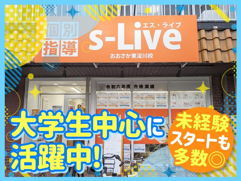 仕事内容 \時給を上げて募集中✨稼ぎたい方に!/ やりがいを持って成長できる塾講師の新着求人◎ ✅週2.3日~全員学生の教室!初バイトにも ✅ネイル・髪型・髪色自由! ✅昇給あり!テレワークも導入★1時間~可 ✅入塾テストなし!わからないことはすぐ聞ける! 小・中学生向けの個別指導塾で、 生徒の学習をサポートするお仕事です! 【具体的には・・・】 ・生徒が取り組んでいる問題の進捗確認 ・解き方が分からないときのサポート (解説を見ながら対応でOK!) ・生徒の学習計画のフォロー ・生徒と一緒に雑談も (恋バナや最近の流行、お悩みなど) 上記のお仕事をお願いします!! 生徒への学習指導はもちろん、 勉強のやり方などのアドバイスもお願いします。 なかなか自分から質問できない生徒さんもおり、 こちらから積極的に声をかけたりと、工夫の仕方は無限大です! 生徒が自信を持って学習に取り組み、 成果を実感できるよう支えてくださる方をお待ちしています! 【テレワークも実施!】 オンラインでの授業も行っており、 希望によっては月4~5時間程度 在宅で勤務してもらっています! 1時間~OK・スキマ時間に働くことも可能◎ 就活や資格勉強と両立したい方にも 安心して続けていただけます。 ◆タブレット解説もあり! 「説明が苦手…」という方も安心! 初期研修(3~4時間) でしっかりサポート! ◆全教科が得意じゃなくてもOK! 最初は1:1で丁寧に 指導しますので安心してくださいね♪ ◆時給制で準備や片付けも給与支給! ⇒今回の募集にあたって 【時給1300円~】に上がりました!◎ \\s-Liveおおさか東淀川校の魅力!// ①【昇給制度】あり!時給は随時アップ! 物価上昇にも対応していきたいと考え アルバイトでも昇給制度を設けています。 年に2回、塾長との評価面談があり、 達成度に応じて昇給のチャンス! これまでの講師は全員が1年以内で昇給しています♪ ②【従業員研修】を実施! 「学ぶ機会を設けてあげたい」という思いで 毎回テーマを決め、塾長自ら従業員研修を行っています。 最近は、”分かりやすいとは何か”というテーマで開催! その他、勉強とは何かや板書についてなど 業務内外問わず活かせる内容で、 スタッフからも好評です◎ ③シフトは【完全自由制】! 塾にしては珍しく曜日固定ではありません! 「仕事より大事なことは大切にしてほしい」と思っているからです。 シフト希望は1ヵ月毎に提出してもらい、 スタッフ同士で協力し合ってシフトを調整します! 資格の勉強がしたい… サークルや部活動が忙しい… テストがあって… など、 お気軽に相談してくださいね◎ ④【おしゃれOK】ネイル・髪型・髪色自由! 塾にしては珍しくかなり自由度高め。 明るい髪色の先輩も多数いますよ♪ 服装もきっちりしたスーツでなくて大丈夫です! 上からジャケットを羽織ってもらえれば、 カジュアルな服装でもOK! 自分らしく働いていただける環境です! / お電話での応募も歓迎! お気軽にお問い合わせください◎ ☎ 06-6476-9930 まで \