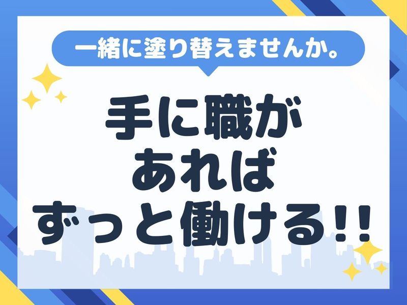 求めている人材 ╒━━━━━━━━━━━━━╗ ❑塗装工事の経験者を求めます❑ ╘━━━━━━━━━━━━━╝ ――経験年数よりも成長意欲を重視!―― ⏩将来に向けて、技術力を高めたい方 ⏩職長や現場責任者を目指したい方 ⏩指示待ちでなく裁量ある仕事がしたい方 これまでの経験を土台に、 さらに一段上の職人を目指したい方を歓迎。 成長意欲のある方には、現場・評価・収入で しっかりと応える環境です。 職場の空気になじんでくれる方、 チームワークを大切にしてくれる方、 じっくり物事に取り組む方を求めます。 将来の職長候補を待っています! ✅学歴不問 ✅男女不問 ✅ブランクOK ✅20代活躍中 ༶ ༶ ༶ ༶ ༶ ༶ ༶ ༶ ༶ ༶ ༶ ༶ ༶ ༶ ༶ ༶ ༶ ༶ 今回募集するお仕事では 【一般建築物】【マンション】 【オフィスビル】【施工管理】 【足場工事】【設備工事】【内装工事】 【外壁補修】【防水工事】【屋根工事】 【建具・サッシ交換工事】【外構工事】 【サイディング施工】 などの経験が活かせます!