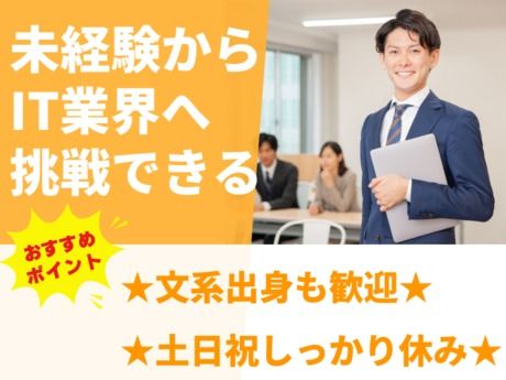 仕事内容 \ここがポイント/ ★未経験からIT×モノづくりの現場へ! ★生産ラインのシステム構築に携われる! ★年休120日以上&土日祝休みで安心◎ *・。・。*・。・。*・。・。* <仕事内容> \工場の生産管理システム構築サポート業務/ 半導体などの「後工程」と呼ばれる製造領域で、 生産管理や装置の制御に関わるシステムの 企画・開発・導入・保守を行うお仕事です。 【主な業務内容】 要件定義:現場の声をもとに「どんなシステムが 必要か?」を整理し、仕様にまとめます 設計・開発:要件に沿ったシステム設計や、 ソフトウェアの開発業務に携わります テスト対応:完成したシステムが正常に 動作するか確認し、不具合があれば修正 導入作業:現場で使えるようにシステムを展開し、 スムーズに運用できるようサポート 運用保守:導入後の定期点検や 改善要望への対応などの保守業務 調整・資料作成:関係部署との日程調整や 仕様書、報告資料の作成なども担当 【未経験スタートも大歓迎】 ・OJT形式でITやシステムの基礎から学べる! ・開発経験がなくてもOK!調整・事務から始められる ・最先端のモノづくりに関わる実感が持てる 「モノづくり現場のIT化に興味がある」 「文系だけどシステム業務に挑戦したい」 そんな方におすすめのお仕事です! *・。・。*・。・。*・。・。*