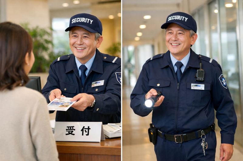 仕事内容 施設内での夜間警備・受付業務です。 夜間の来館者対応、出入管理、館内巡回、施錠・解錠確認などを行います。 屋内業務が中心で、力仕事はほとんどありません。 *初めての方でもしっかり研修して配置いたしますので、安心して勤務出来ます。