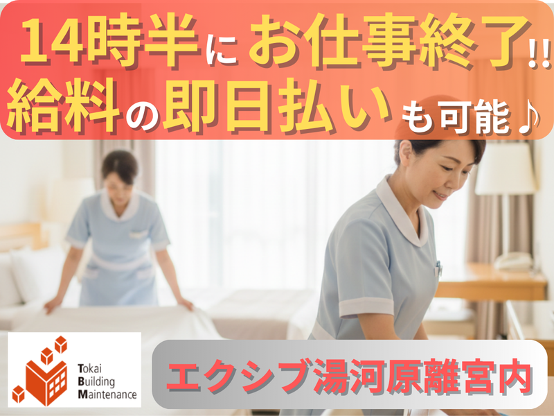 10時~14時半・日払いOK・湯河原駅から無料送迎の客室清掃