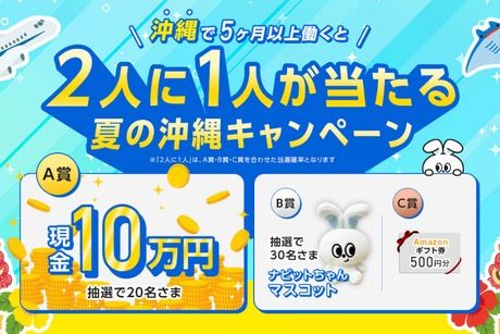 選考プロセス 選考フロー <お仕事開始までの流れ> 1.応募後の案内から、マイページ作成(1分) 2.初回カウンセリング(電話15分) 3.希望のお仕事に応募(面接なし) 4.お仕事決定後、リゾートバイトへ! ※初回カウンセリングの際に希望条件をお伺いし ほかのお仕事をご紹介することも可能です ▼「リゾートバイトダイブ」のうれしい特徴・特典 [1] リゾートバイト求人数、No.1  ̄ ̄ ̄ ̄ ̄ ̄ ̄ ̄ ̄ ̄ ̄ ̄ ̄ ̄ ̄ ̄ 求人数が多いので希望のお仕事が見つかりやすい! [2] 口コミ数、No.1  ̄ ̄ ̄ ̄ ̄ ̄ ̄ ̄ ̄ ̄ リゾートバイト勤務先の口コミ数、6,000件以上! レビューを見ながらお仕事が選べるのはダイブだけ! [3] 無料オンライン英会話の特典あり  ̄ ̄ ̄ ̄ ̄ ̄ ̄ ̄ ̄ ̄ ̄ ̄ ̄ ̄ ̄ ̄ ̄ ̄ 「ネイティブキャンプ」を無料で利用することができます! リゾートバイトをしながら、空き時間で英語力もUP! ※[1][2][3]は2025年10月時点のものです 【問合せ先について】 問合せ先:0120-553-000