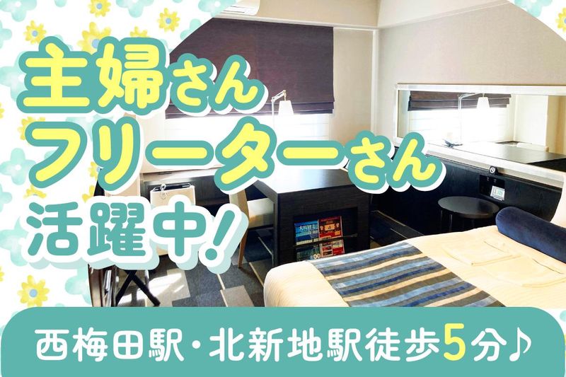 仕事内容 ◤ ̄ ̄ ̄ ̄ ̄ ̄ ̄ ̄ ̄ ̄ ̄ ̄ ̄ ̄ ̄ ̄ ̄ ✨ホテル内の清掃STAFFの募集✨ 【午後14時まで】週2日~週5日勤務 _________________◢ ✅20代~60代の男女スタッフ活躍中 ✅10時~14時までの1日4時間勤務 ✅扶養内勤務や副業もOK ✅主婦(夫)さんや大学生が活躍中 ✅西梅田駅・北新地駅から徒歩5分♪ ………………………………………………… 【 お仕事内容 】 ■洗面所やお風呂・トイレの掃除 ■アメニティグッズの交換 ■お部屋の掃除 ■ベッドメイク・シーツ交換 ベッドメイクは体を動かすお仕事ですが、 無理のない範囲で取り組めます。 実際に定年後の60代スタッフも活躍中! 年齢に関わらず、長く続けられる環境です。 基本一人で作業を行うので 一度覚えたら自分がやりやすい順番で 進めることができます。 ………………………………………………… 当ホテルでは、知識・経験ゼロの 未経験メンバーも活躍しています! その理由は… ◎習熟度を見ながら業務をお任せ ◎シンプルなお仕事で覚えやすい \ はじめは簡単なお掃除からスタート / 入社後はお風呂周りの掃除や室内清掃、 アメニティの補充など 簡単な業務から覚えてもらいます。 慣れてきたらベッドメイクをお教えします!