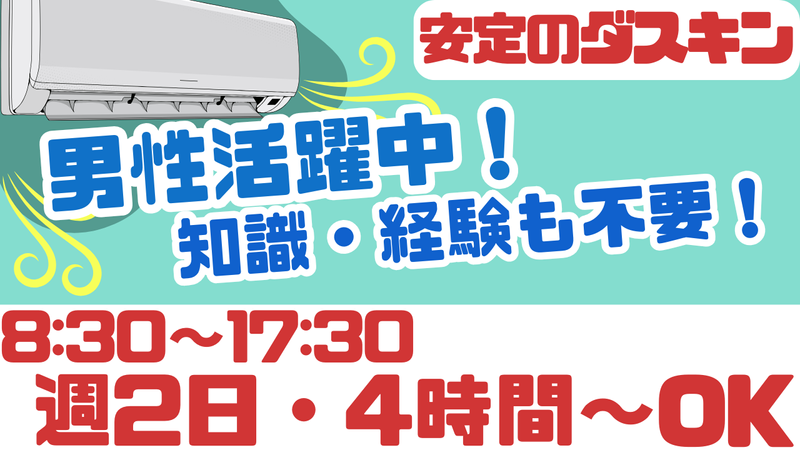 求めている人材 【男性活躍中の部門です】 ●無資格OK/未経験も積極採用! ●普通免許をお持ちの方尚可!! ●フリーター歓迎/Wワーク歓迎 ●20代~50代活躍中 ●家族持ちの方も安心! ╭━━━━━━━━━━━╮ こんな前職の方も活躍中 ╰━━━━━v━━━━━╯ ・清掃スタッフ ・エアコン清掃 ・ハウスクリーニング ・設備メンテナンス ・メンテナンススタッフ ・設備清掃 ・設備点検 ・エアコンクリーニングスタッフ ・空調設備工事 ・ダクト清掃 ・配送ドライバー・内装工事 ・現場作業スタッフ ・現場作業員 ・配送スタッフ ・宅配スタッフ など! (※もちろん必須ではありません!)