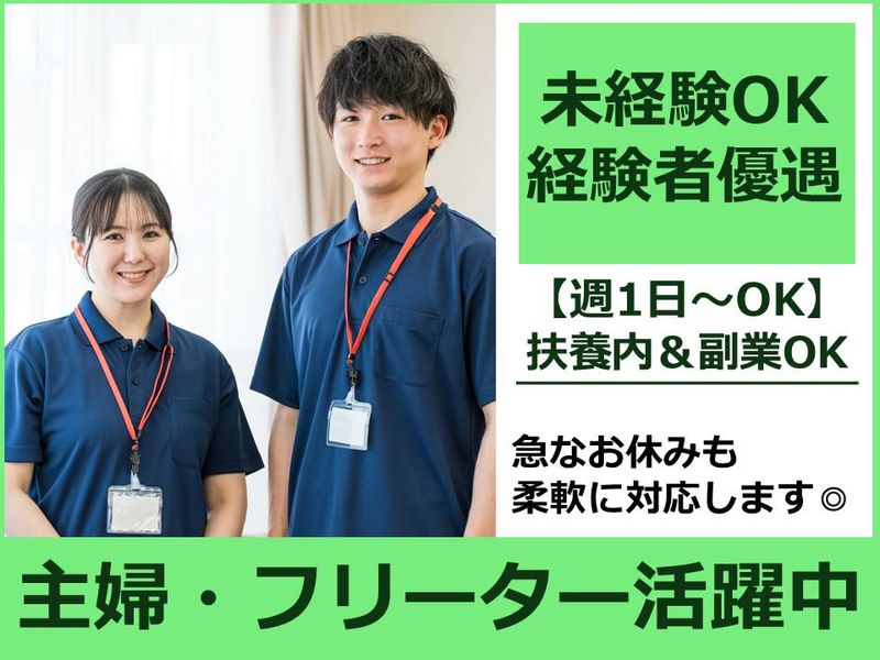 求めている人材 \在籍スタッフの半数が未経験スタート!/ 新人の気持ちがわかる方ばかりなので安心! << 学生歓迎!フリーター歓迎 >> ※外国人スタッフの採用実績もあります!※ 【採用は人柄重視!気軽に応募ください!】 *経験不問/年齢不問/学歴不問!資格不問! *特別なスキルや知識不要!未経験者歓迎! 【男性・女性活躍中】 *フリーター歓迎 *WワークOK・Wワーク歓迎 *扶養内勤務歓迎!主婦・主夫歓迎 *子育て中ママ在籍中 *ブランクOK・ブランク歓迎 *仕事復帰した方も活躍中 -------------------- 応募の理由やきっかけは何でも構いません! 【 経験者歓迎!有資格者歓迎 】 [ 下記の経験があれば活かせますよ! ] *ショートステイ、デイサービス、福祉業界 *特別養護老人ホーム、病院、クリニック *看護助手、看護補助、有料老人ホームなど ※※上記経験の雇用形態は問いません!※※ (正社員・アルバイト/パート・短期・単発・ 契約社員・派遣社員・業務委託社員 など)