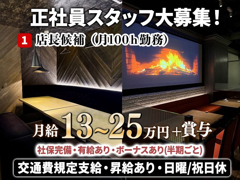 勤務時間 平均所定労働時間:100時間/月 店長候補(ホールスタッフ) 14:30~23:30(実働7.15h勤務※休憩45分) or 19:00~翌3:00(実働7.15h勤務※休憩45分) 上記いずれかの勤務になります。 就労期間:長期勤務できる方歓迎
