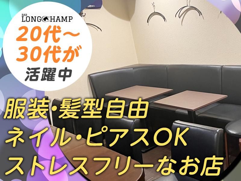 仕事内容 ━━━━━━ ✨BAR LONGCHAMP ━━━━━━ ナイト初心者さんも 居心地良く働きやすいお店♪ キレイでこじんまりとした店内は、 常連のお客様にとっては憩いの場♪ ママの大らかで優しい人柄に 惹かれて来店する方も多く、 穏やかでアットホームな 雰囲気のお店です! 未経験の方でもすぐ馴染めるような ほっこりと和やかな空気感ですので、 少しでも気になったら ぜひご応募くださいね! ━━━━━━ ✨ママのお手伝い ━━━━━━ 簡単なお酒を作りながら、 お客様と楽しくおしゃべり♪ ⇒お仕事は基本コレだけでOK◎ 隣に座っての接客はありませんので、 未経験の方でもリラックスして 働けます♪ 困った時は優しいママや先輩が フォローしますので ご安心くださいね!! ━━━━━━ ✨当店の特長をご紹介! ━━━━━━ ◇… キャストの平均年齢は32歳!! OLさん、フリーターさんが 中心に活躍中。ブランクがある ナイト経験者も歓迎です♪ ◇… 時給UPのチャンスあり♪ 時給1900円を最低保証の上、 月一回の査定で頑張りをお給料に反映!! 余計な引かれ物もありませんよ☆ ◇… 勤務は月1回からでもOK あなたの働きやすさを最優先!! 出勤ペースの相談には 柔軟に対応しています♪ ~ ~ ~ ~ ~ ノルマ・罰金などの不安要素は一切なし!! 未経験でスタートした先輩も沢山います。 まずは気軽に応募してくださいね (^_-)-☆ ━━━━━━ ✨Staffインタビュー ━━━━━━ ▼ Aさん(30歳・OL)  ̄ お昼の仕事の収入だけだと ちょこっと物足りなくて… 当店でWワークを始めました。 ママもお客様も穏やかな雰囲気で、 自然体で過ごせるのが助かります。 無理にテンションを 上げなくてもいいので、 昼の仕事と掛け持ちでも疲れませんね。 むしろいい気分転換になってます♪