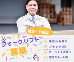 無料送迎&マイカー通勤OKで通勤便利♪雑貨・日用品の入出荷(フォークリフト)