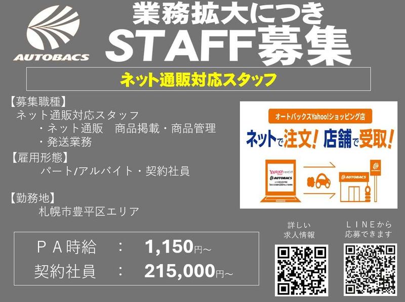 【スーパーオートバックス函館】業務拡大|ECサイト管理運営スタッフ|契約社員・アルバイト・パート|高時給|登用あり&実績多数